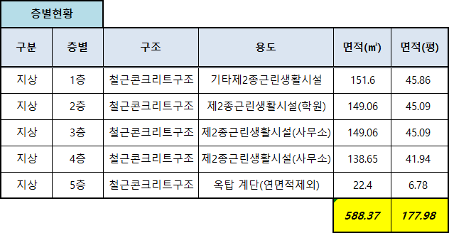 | 총층 / 층 | 지상1~지상5층 / 건물전체 |