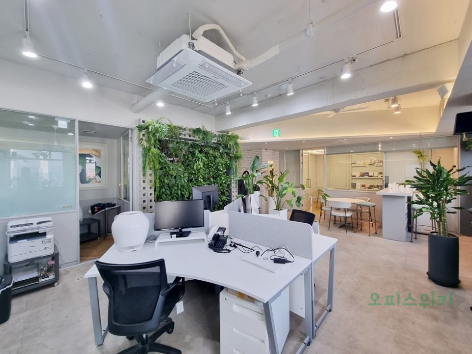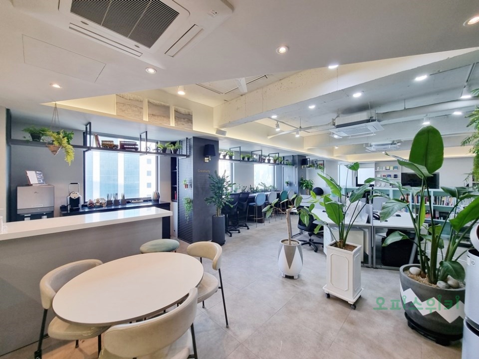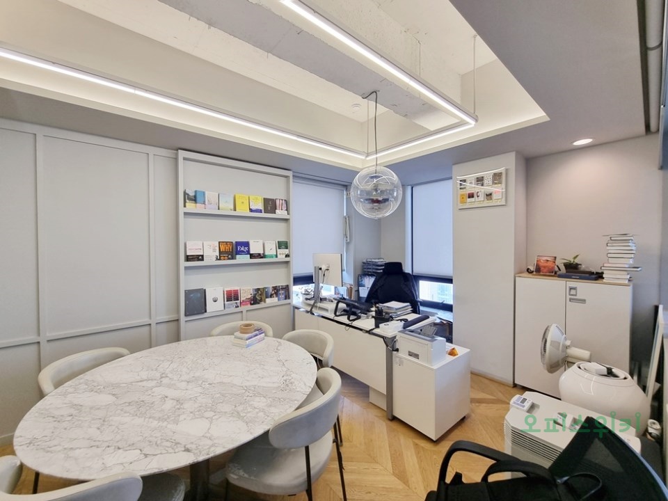 넓은 업무홀, 룸(회의실, 대표실 등), 탕비공간 구조로 이루어져 있어 효율적인 업무공간을 구성 하고 있습니다.