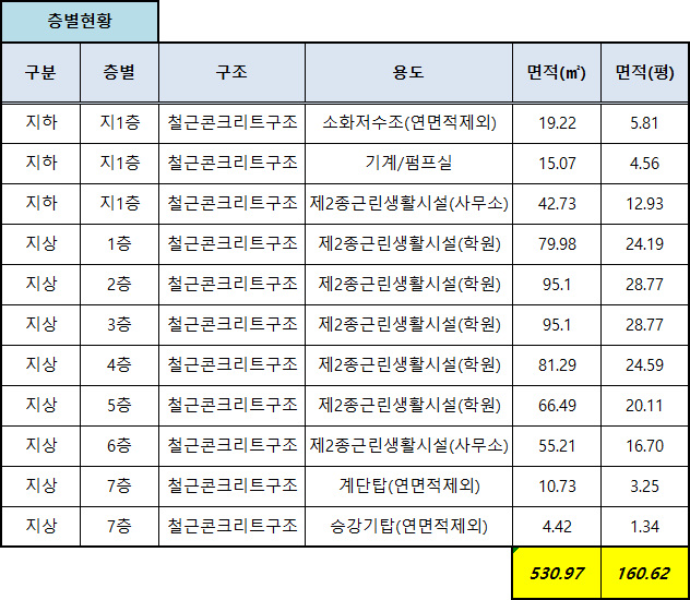 | 건축물용도 | 제2종근린생활시설(학원) |