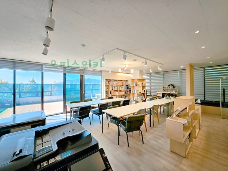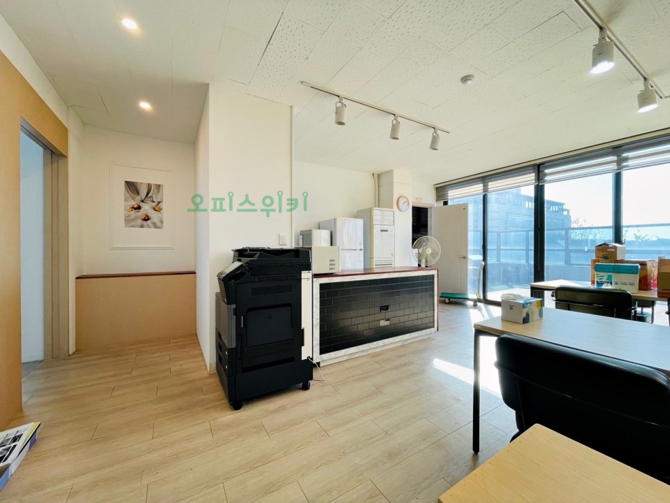 넓은 업무홀, 룸2개(회의실, 대표실), 넓은테라스, 탕비공간 구조로 이루어져 있어