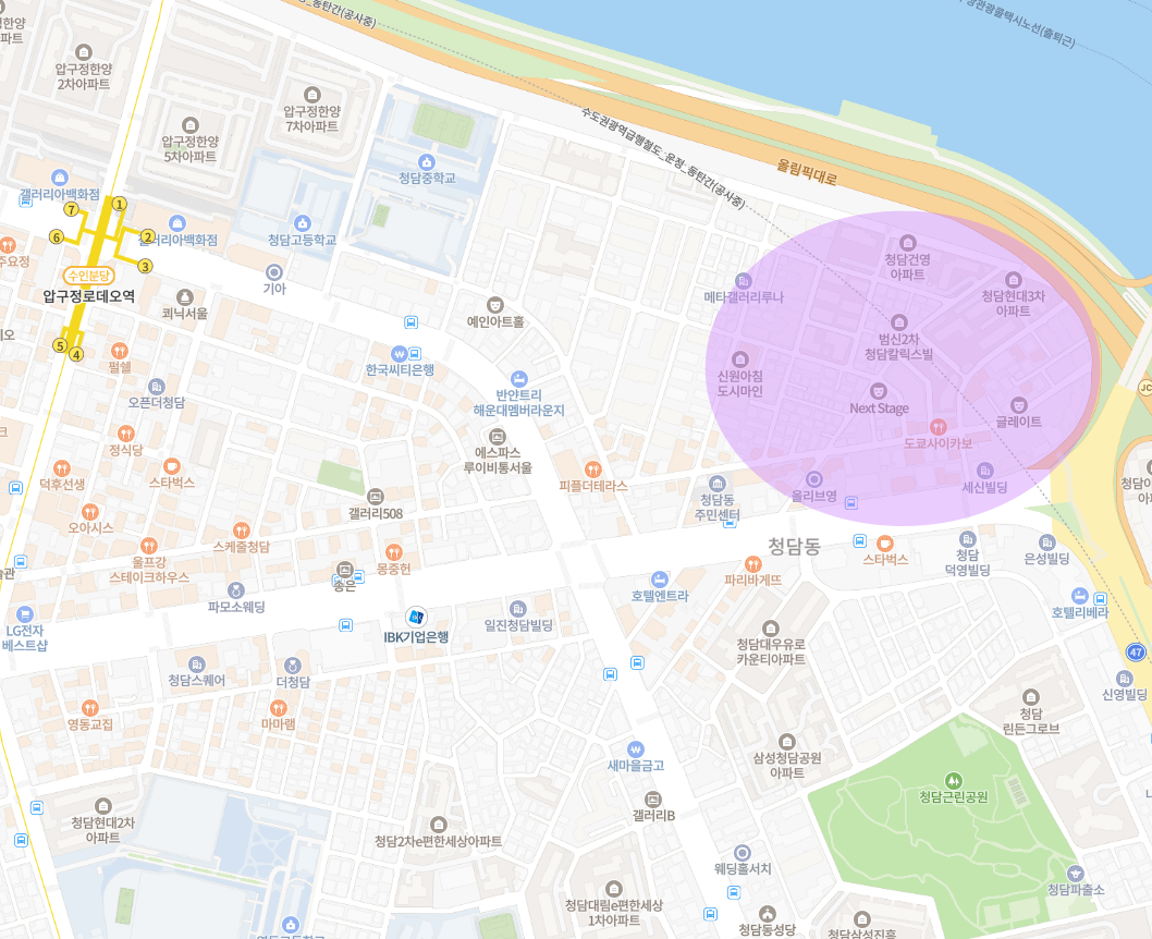 ▶▷ 압구정로데오역 / 청담동 / 새벽집인근