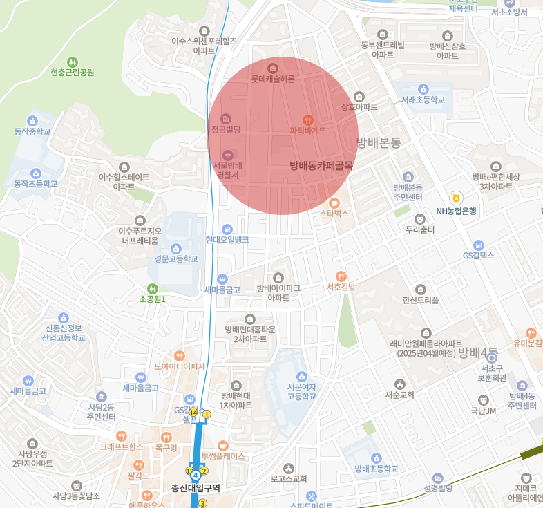 지하철 4호선과 7호선이 교차하는 이수역(총신대입구역)을 이용 할 수 있고