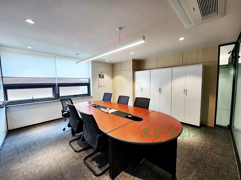 넓은 업무홀, 룸2개(대표실, 회의실), 탕비실, 휴계실, 외부남녀분리화장실 구조로 이루어져 있어