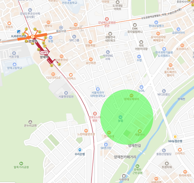 ▶▷ 양재역 / 양재천카페거리 인근 / 교육개발원사거리