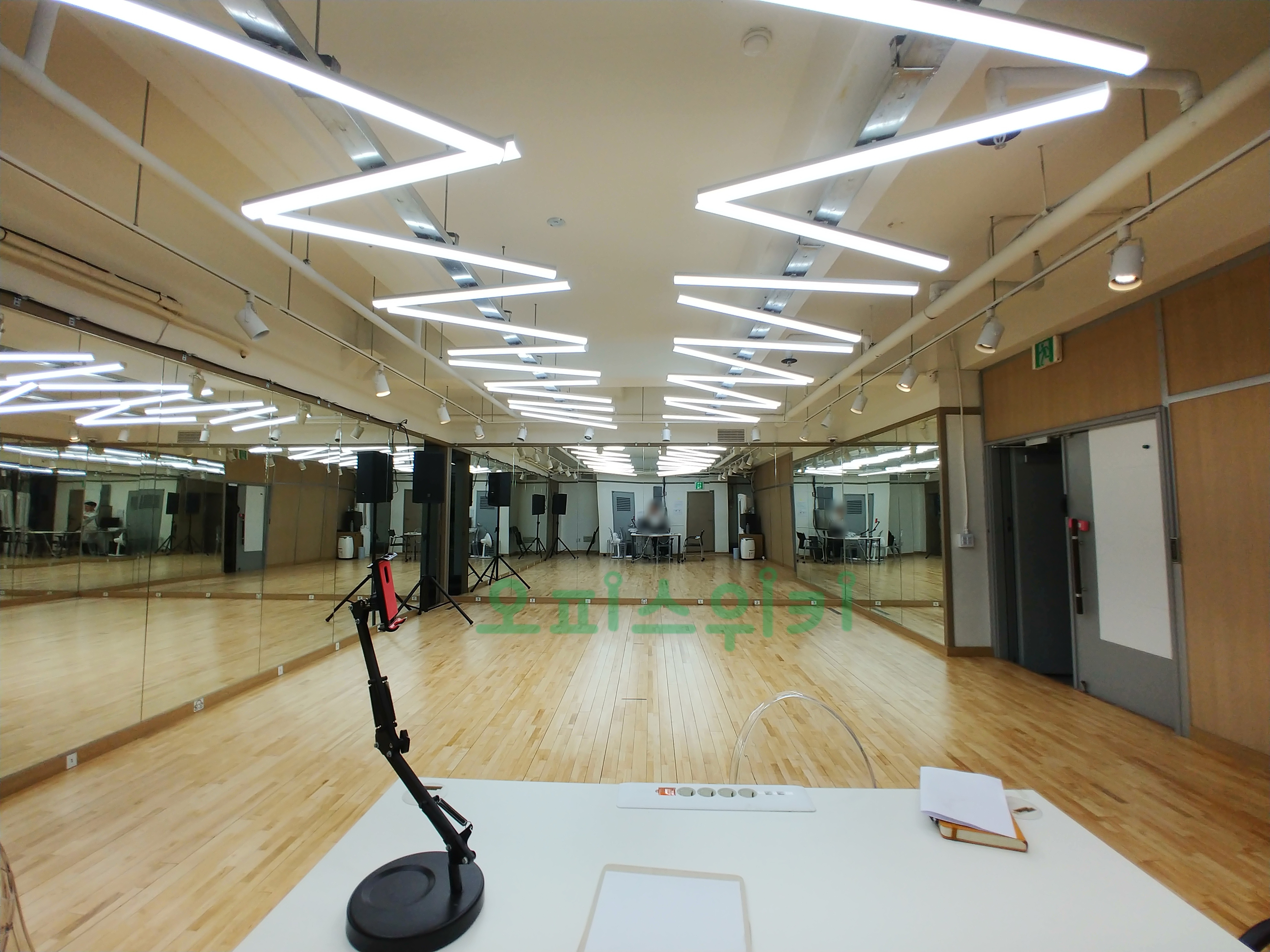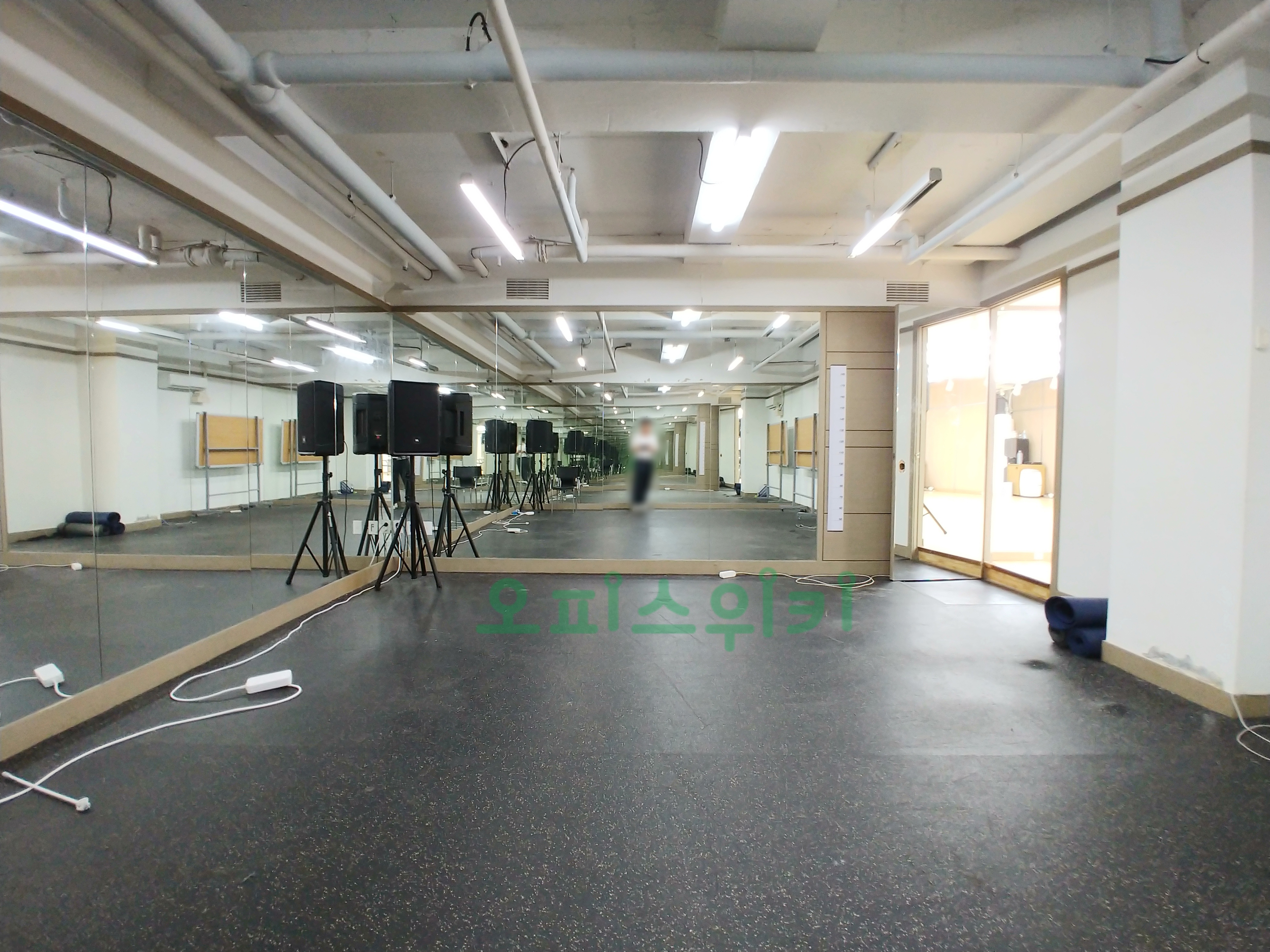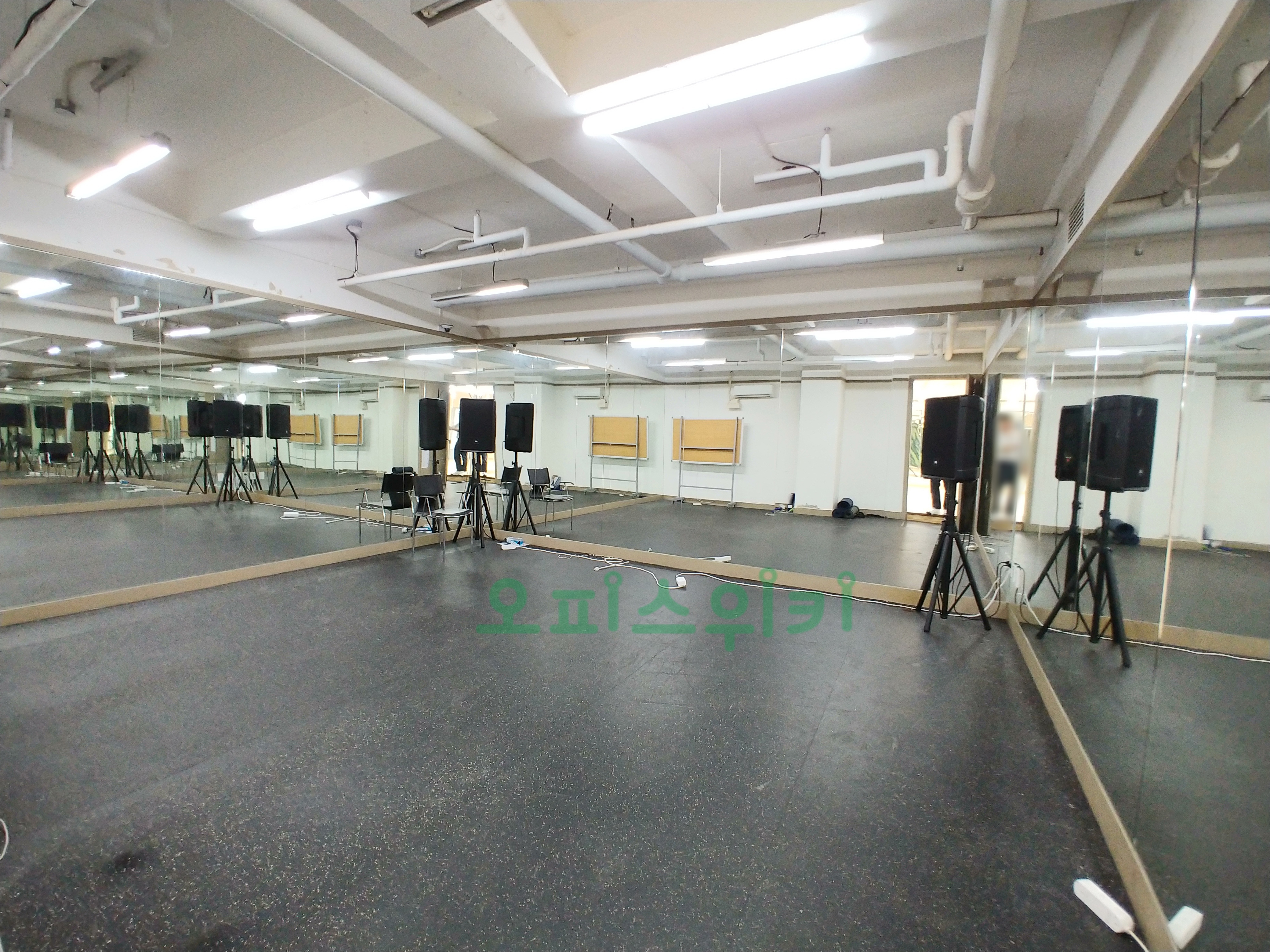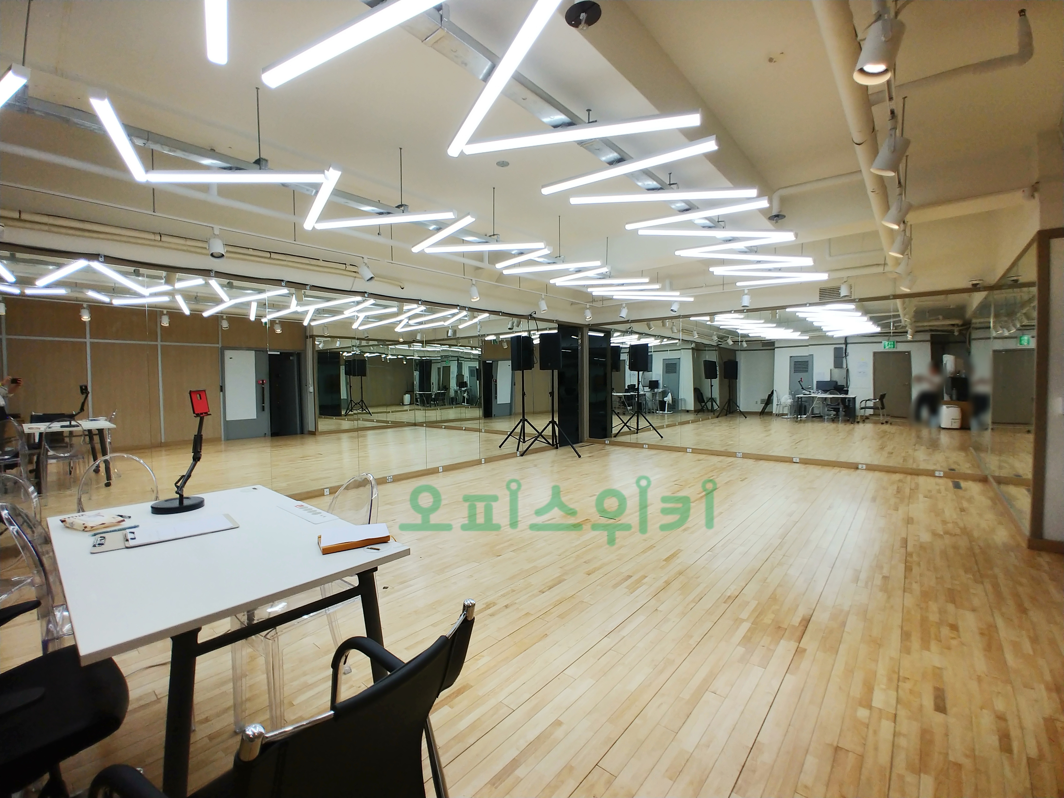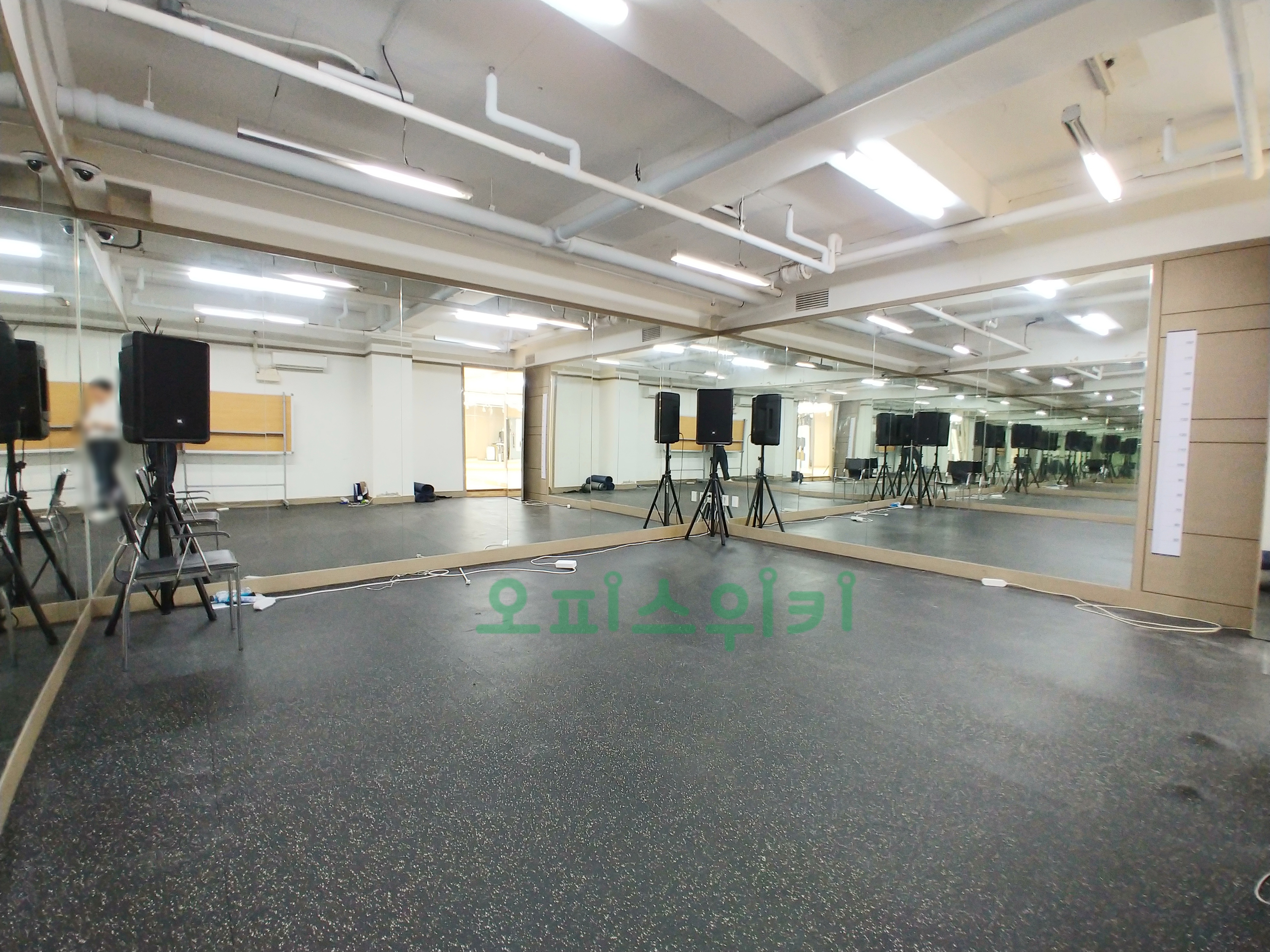 강화마루, 거울, 조명, 오디오 시스템이 완벽하게 설치 되어 있습니다.
