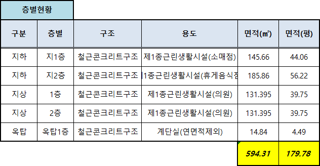 임대면적 179평으로 지하2층부터 지상2층까지 총 4개층 규모로