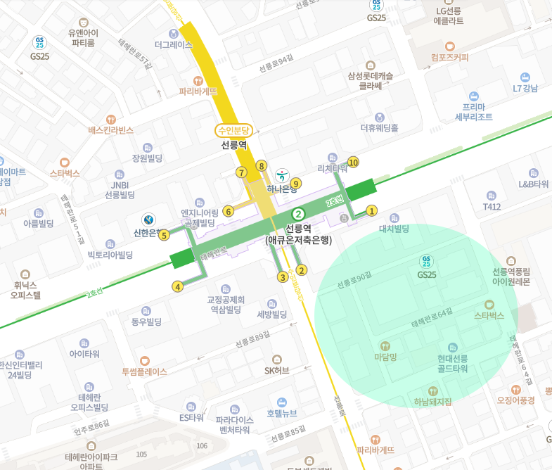 선릉역 도보 3분 거리로 테헤란로 대로변 이면 고층빌딩으로