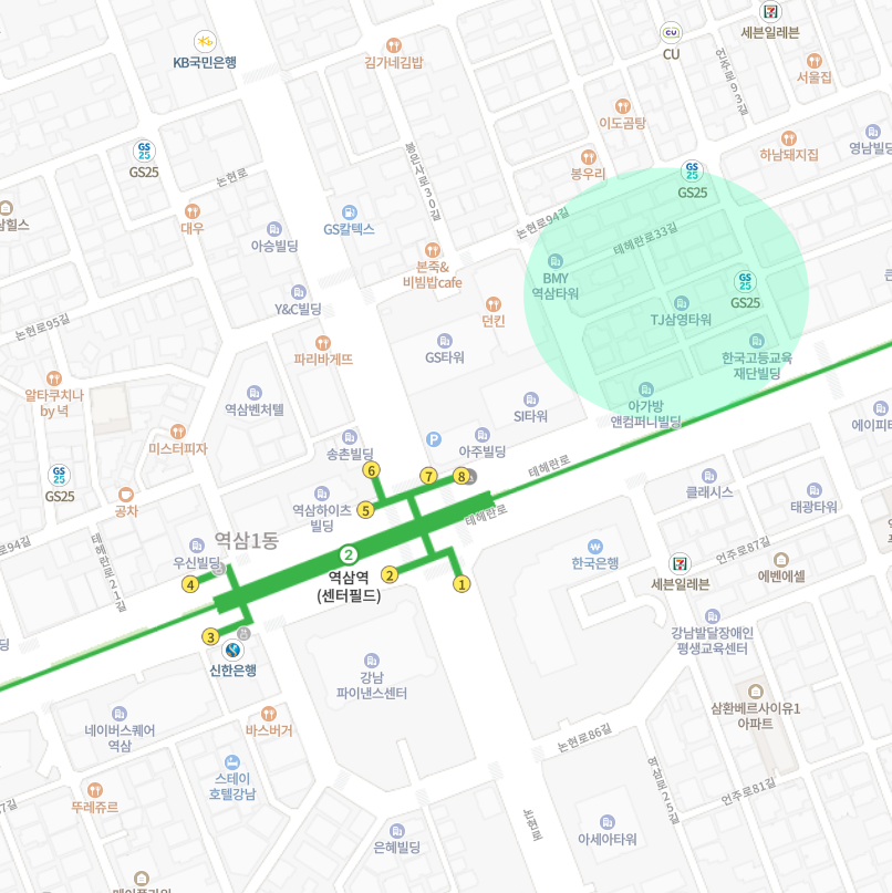 지하철역 2호선 역삼역을 도보 5분 이내로 이동 할 수 있고,