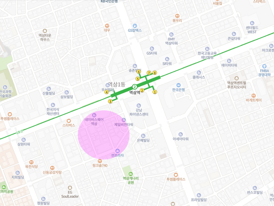 지하철 2호선 역삼역을 도보 5분 이내로 이동 할 수 있고,