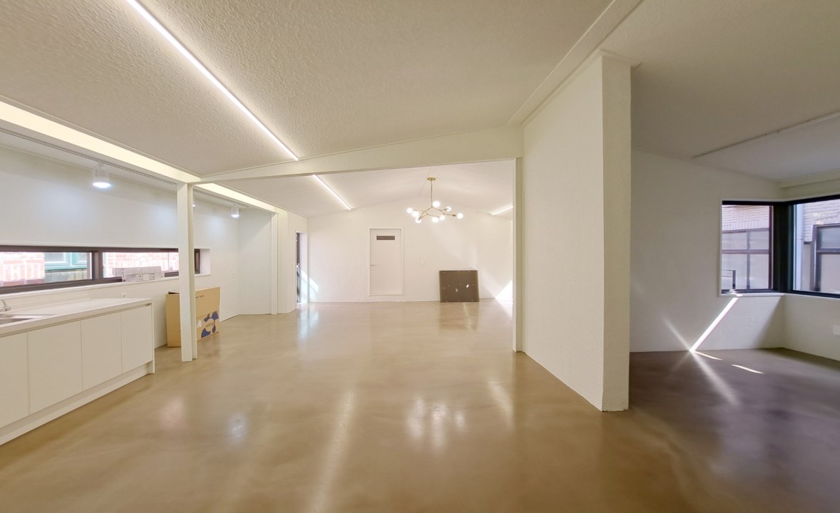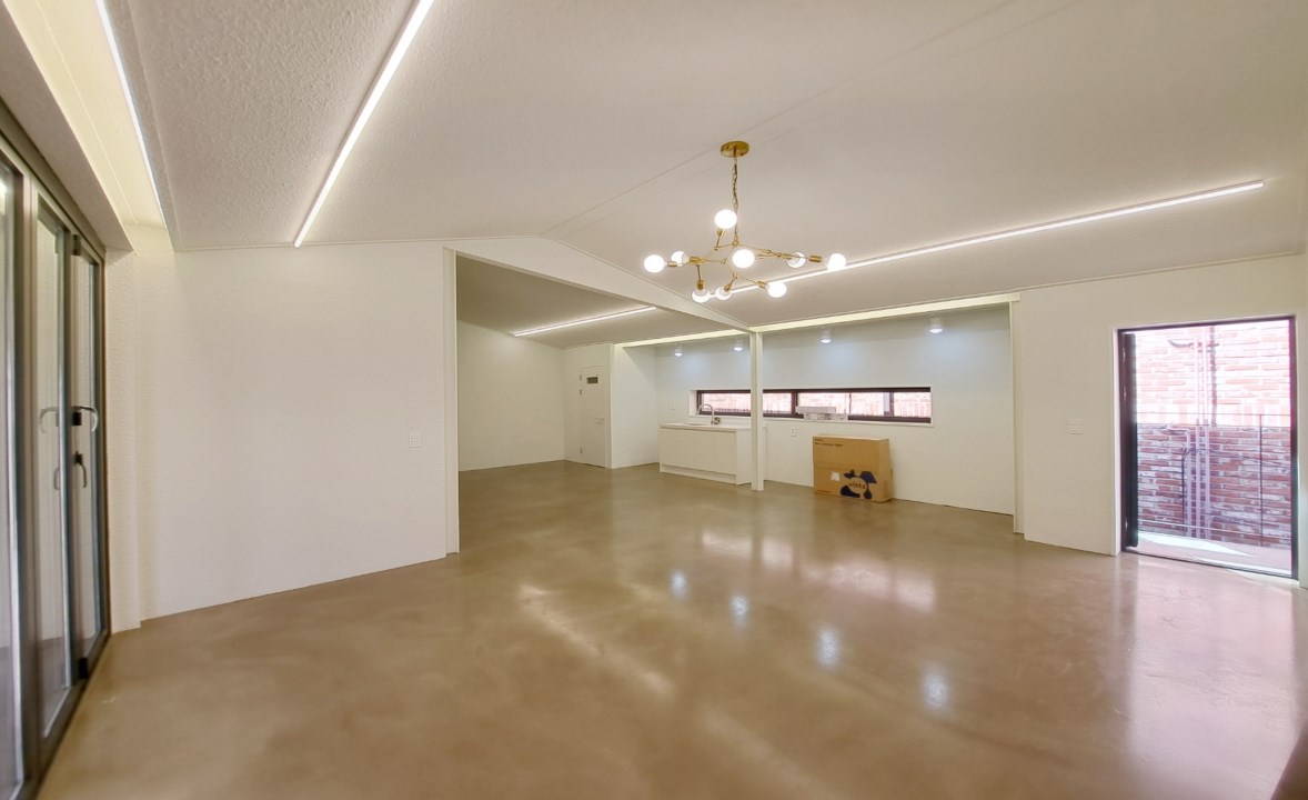 깔끔한 화이트톤 인테리어와 빈티지스런 에폭시 바닥으로
