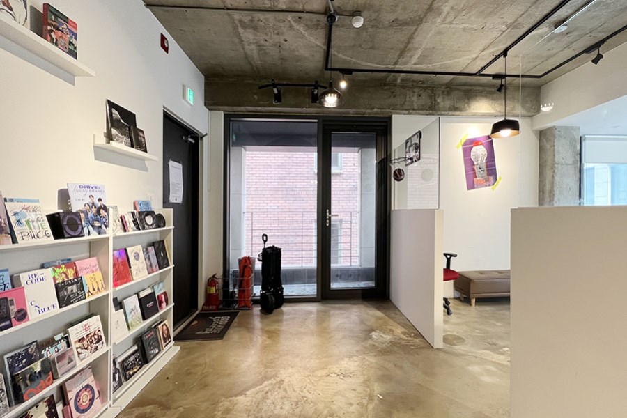층고가 높은 노출형 천장 구조로 되어 있고, 에폭시 바닥 마감으로