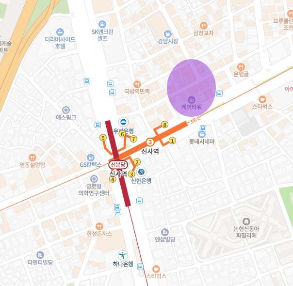 지하철 3호선 신사역을 도보 3분 이내로 이동 할 수 있고,