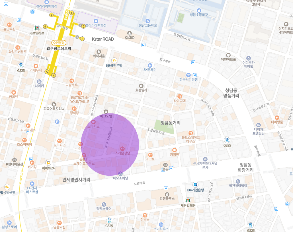 압구정로데오역 / 학동사거리 / 청담스케줄 인근