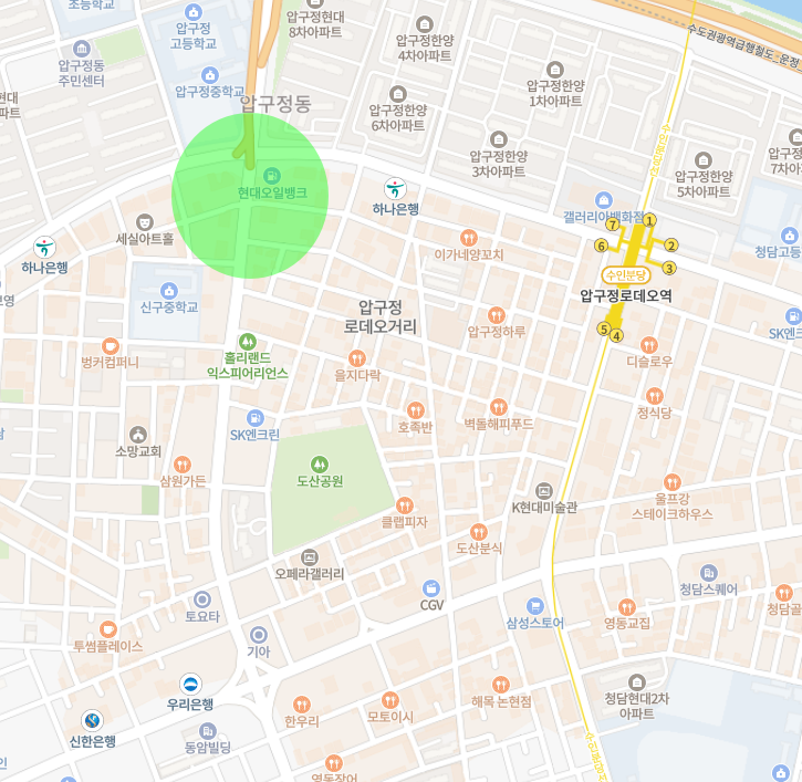 압구정로데오역 / 성수대교 남단 대로변 / 도산공원